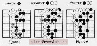 Игра го. профессионалы в го.Го пользовалось популярностью высших слоёв общества как в Китае, так и в Японии, но именно в Японии был достигнут высший уровень мастерства, и игра стала популярна среди всего народа. Игра поднялась в зенит теоретического развития в конце периода Эдо (1603-1868), но достигнутые результаты были уничтожены в середине 1860 годов в результате распада сёгуната Токугава. Существовавшая система государственной поддержки была уничтожена в 1868г, и главы четырёх школ вместе со своими учениками обнаружили, что живут в новом мире, где вековые традиции разрушены. В 1880 годы интерес к го начал возрождаться, теперь под покровительством частных лиц. Записи партий начали публиковаться в газетах. Одной из первых это сделала газета Ёмиури (Yomiuri Shimbun) в 1885 году. В настоящее время это ведущий спонсор го в Японии. В 1910 уже более дюжины газет ведут колонки, посвящённые го, и возродилась возможность зарабатывать себе на хлеб, профессионально занимаясь игрой. В июле 1924 года была основана Японская Ассоциация Го (Nihon Ki-in), и профессиональное го возродилось в современной форме. На сегодняшний день в Японии насчитывается около 500 активных профессиональных игроков. Профессиональные игроки могут реально зарабатывать деньги, беря плату за сыгранную с ними партию и выигрывая призы во многих соревнованиях. Оплачивается судейство турниров, участие в телевизионных программах, обучение любителей. Источником дохода являются, так же, гонорары за выпущенные книги и видеокассеты. Как становятся профессиональными игроками в Японии? Сначала надо стать учеником в Японской Ассоциации Го (Nihon Ki-in) или в Западной Японской Ассоциации Го (Kanzai Ki-in). Как правило, принимают только молодёжь в возрасте от 5 до 18 лет, продемонстрировавшую наличие особого таланта. Каждую субботу и воскресенье эти студенты соревнуются в рейтинговом турнире. Чтобы стать профессионалом нужно выйти в высшую лигу этого турнира. Из 48 аспирантов только 5 человек в год получают звание профессионала. Став профессионалами, они получают звание – игрок первого дана. Чтобы повысить свой ранг, профессионалы играют против других профессионалов в рейтинговом турнире. Система подсчёта рейтинга достаточно сложна. Суть её состоит в том, что для повышения ранга нужно выиграть определённый процент некоторого количества партий. Самый высокий возможный ранг – 9 дан. Ещё немного о захвате камней в партии гоВ этой статье я проанализирую партию опубликованную в прошлый раз, чтобы помочь вам понять, как поступать обнаружив, что одному или нескольким вашим камням угрожает захват.
